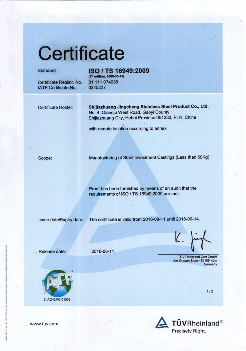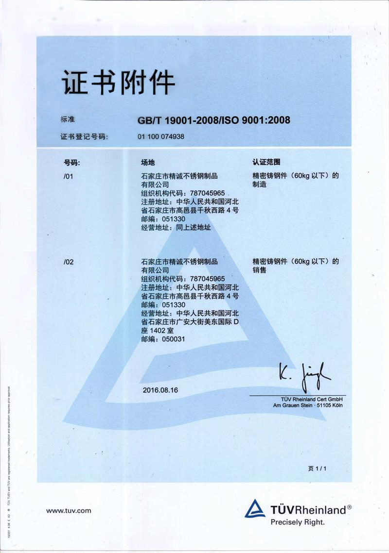 石家莊市精誠不銹鋼制品有限公司,是一家從事專業(yè)精密鑄造的企業(yè)。主要生產(chǎn)不銹鋼、合金鋼、低碳鋼及各種特種合金材質的精密鑄件及加工產(chǎn)品。